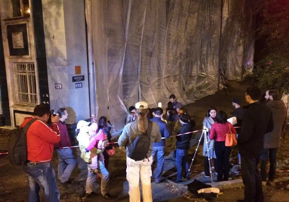 Общественники возмущены "незаконным" сносом дома в центре Алматы Фото © Владимир Прокопенко. Общественники возле дома на Желтоксан, 115 бойкотируют снос здания.