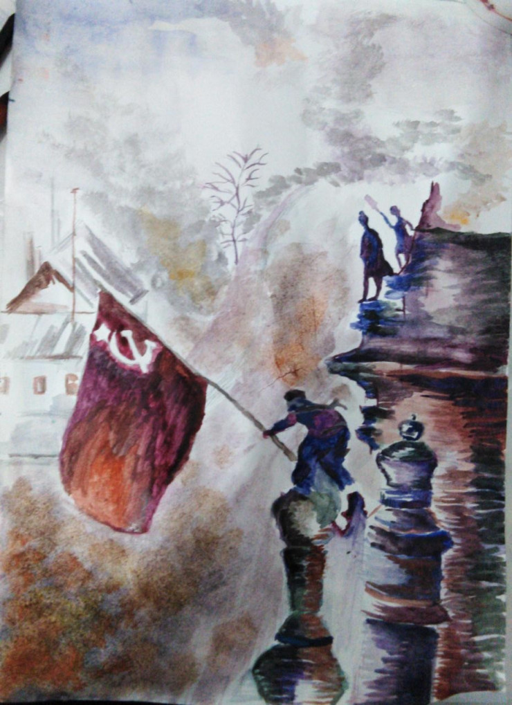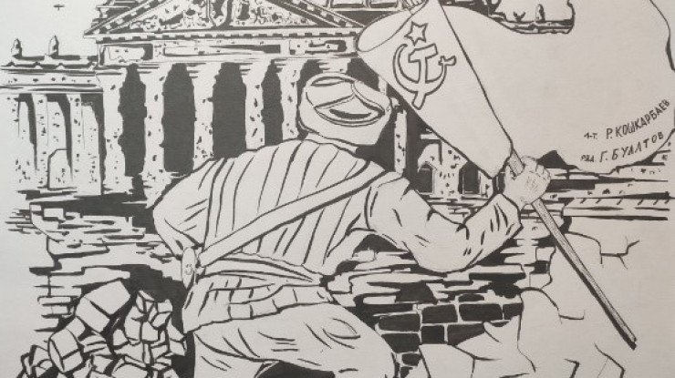 Сотни юных художников со всего Казахстана изъявили желание через призму своего творчества отразить исторический момент, когда 30 апреля 1945 года, за несколько дней до Победы, советские солдаты первыми водрузили Красное знамя на фасаде Рейхстага. По итогам конкурса выбраны 18 финалистов, чьи картины попадут в документальный фильм казахстанско-российского режиссера Константина Харалампидиса - "Батыры Великой Отечественной: Рахимжан Кошкарбаев и Григорий Булатов".