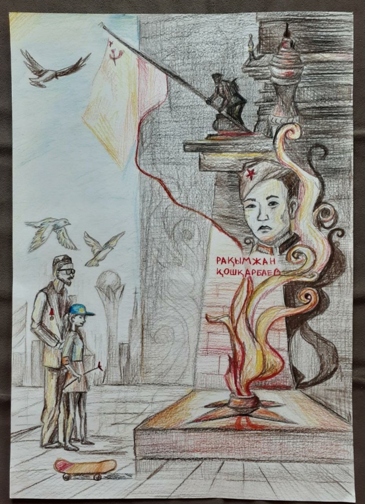 Подведены итоги республиканского конкурса рисунков "Вечные герои Победы", посвященного подвигу Рахимжана Кошкарбаева и Григория Булатова, передает Tengrinews.kz.