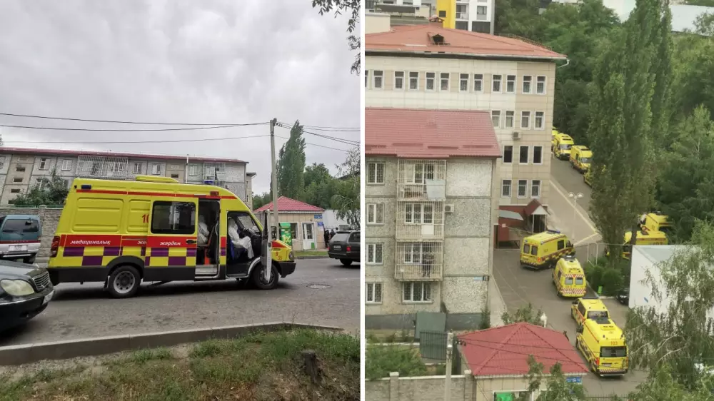 Фото и видео с места происшествия распространяются в Сети. Автор одного из роликов сообщает, что сегодня, 1 июля, возле наркологического диспансера на улице Макатаева появилась очередь из машин скорой помощи.
