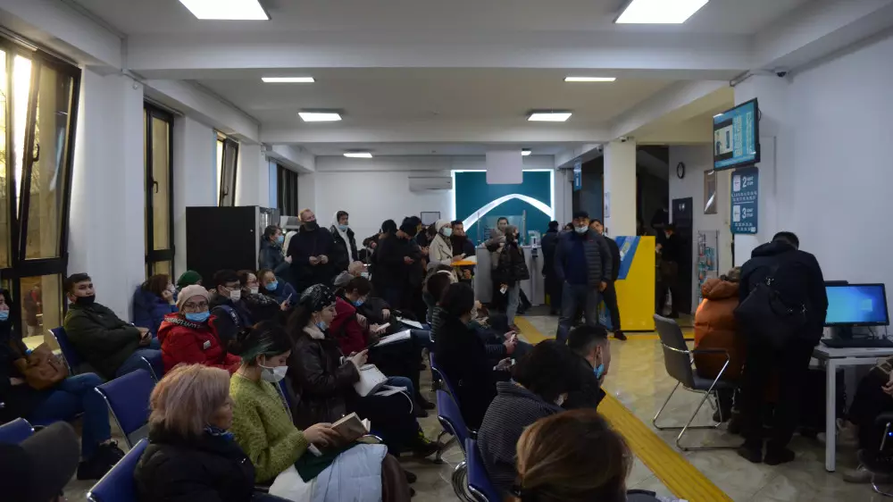 Большинство посетителей решили обратиться в банк, после того как в ЕНПФ сообщили о росте порога достаточности для снятия пенсионных накоплений с 2022 года почти в два раза. Многие граждане поспешили обратиться в банк, чтобы перечислить средства выше порога достаточности на счет в "Отбасы банке" для последующей покупки жилья.