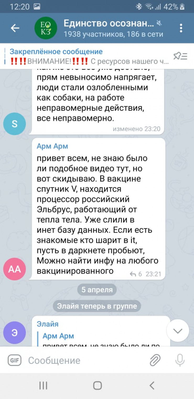 Казахстанцы обсуждают в Telegram сообщение о том, что в вакцине "Cпутник V" якобы содержатся жидкокристаллические чипы, которые контролирует российский процессор "Эльбрус". На сайте Stop Fake сообщается, что подобное невозможно по ряду причин, а информация не более чем очередной фейк, передает Tengrinews.kz.