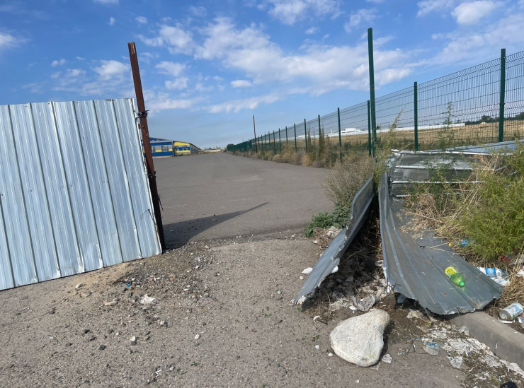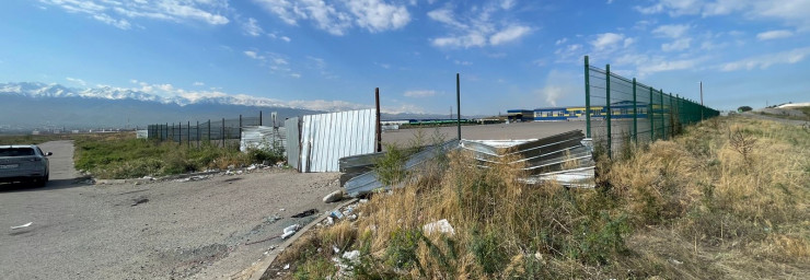 Участок находится в индустриальной зоне, которая расположена в Алатауском районе. Прямо напротив стоит Детская инфекционная больница, построенная во время пандемии. А вот за дорогой - заброшенное трехэтажное здание. Судя по дизайну, его возвели совсем недавно.
