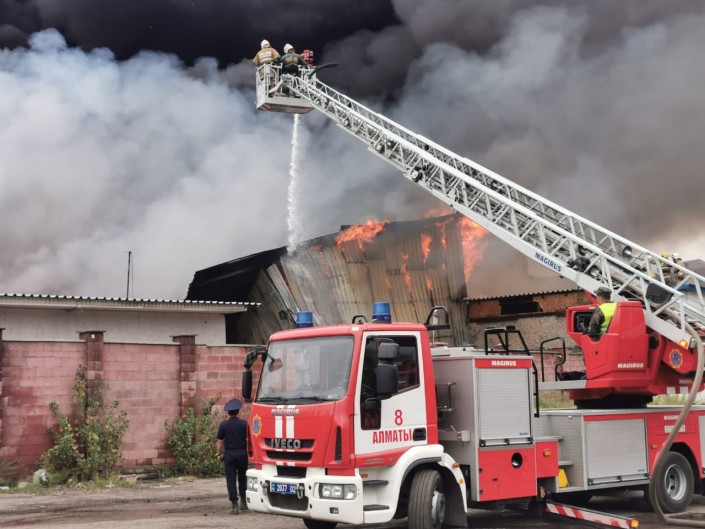 "В 13.38 мы получили сообщение о пожаре. Это отдельно стоящая территория, соседствует с некоторыми рынками. Склад твердо-сгораемых материалов. Пожар очень быстро распространился на большую площадь. Изначально мы давали около трех тысяч (площадь пожара. - Прим. автора). Сейчас мы достаточно долго сдерживаем этот пожар на одной площади, привлекли авиацию. Дыма стало поменьше. Площадь будет значительно ниже", - отметил Аубакиров.