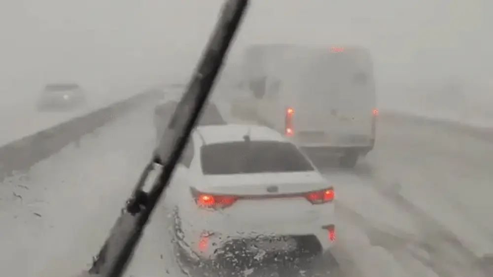 17 ноября в 16.30 в Жамбылской области в связи с ухудшением погодных условий - снег, метель, ограничение видимости - введено ограничение движения для всех видов автотранспорта на автодороге Алматы - Ташкент - Термез, 160-238-й километры, участок село Кенен - село Благовещенка.