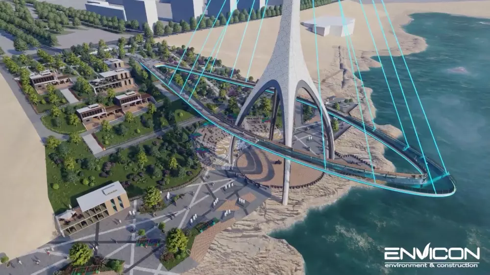 "Во-вторых, будет подвесной пешеходный мост, примыкающий к скверу Шевченко. Часть моста выходит на море, справа и слева от моста можно увидеть весь берег и море", - добавил Ержигит Балкыбеков.