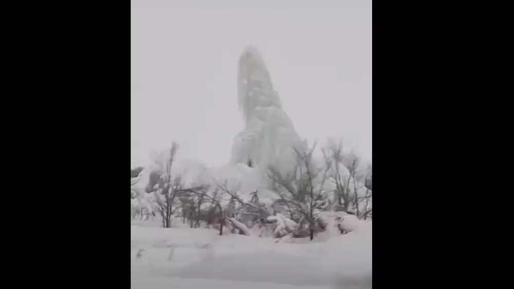 Огромный "ледяной айсберг" вырос из-под земли на окраине Караганды