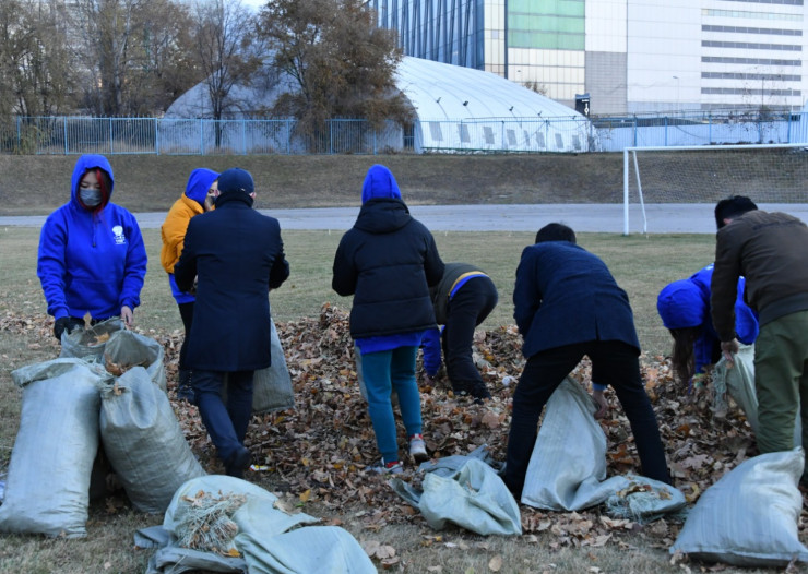 Отмечается, что руководство университета помогло творческой группе организовать сложный художественный процесс. На воплощение идеи ушло два дня подготовительной работы с утра до ночи и несколько грузовиков листьев, которые собирали в парках и скверах Алматы.