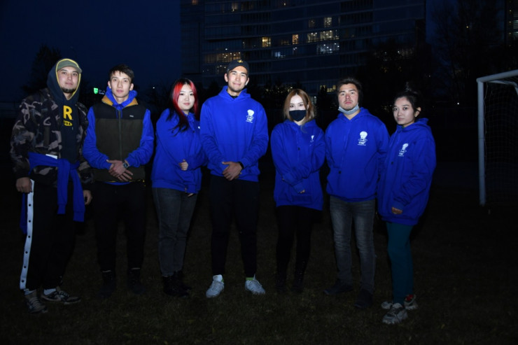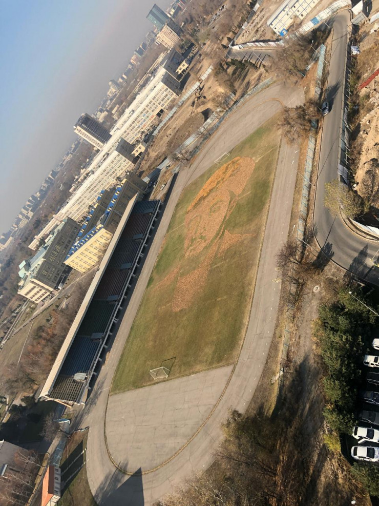 В создании рисунка приняли участие студенты КазНУ и волонтеры города. Необычная картина появилась на стадионе Казахского национального университета имени аль-Фараби.