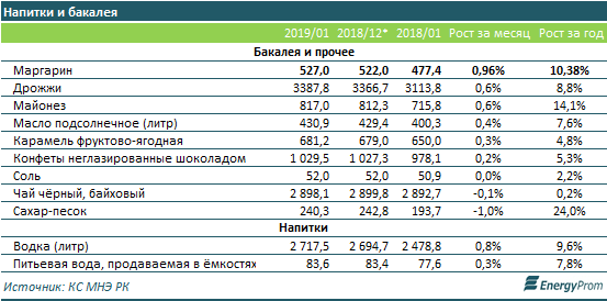 Из бакалейных изделий на 1 процент за месяц подорожал маргарин, а сахар, напротив, подешевел на 1 процент. Среди напитков также не ощущалось заметных колебаний цен: водка прибавила 0,8 процента за месяц, питьевая вода - лишь 0,3 процента.