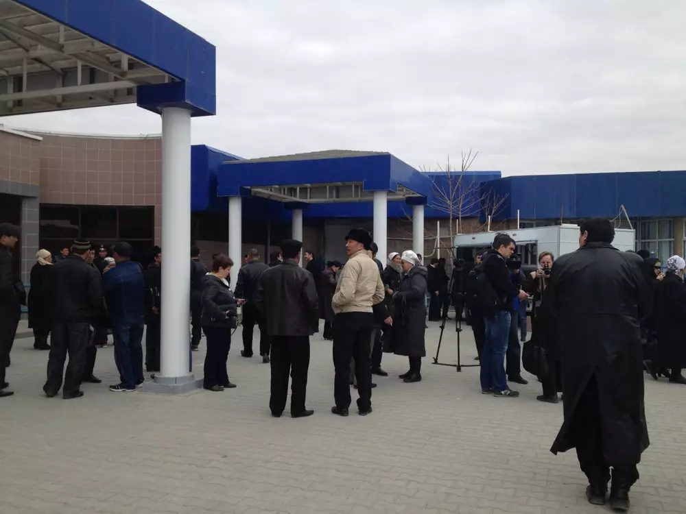 Около 20 пострадавших в Жанаозене отказались от своих претензий к подсудимым У здания, где проходит судебное слушание. Фото ©Tengrinews