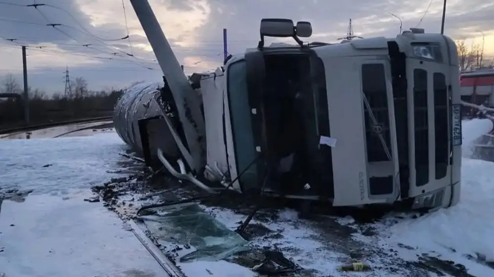 В Павлодаре перевернулся битумовоз. На место прибыли пожарные, участок дороги оцепили, передает Tengrinews.kz со ссылкой на Kazinform.
