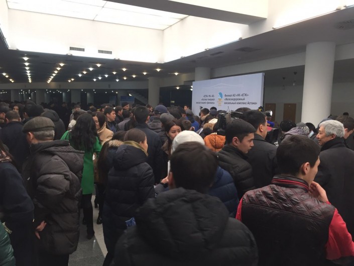 Отметим, что среди соискателей на сегодняшней ярмарке самая оживленная очередь наблюдалась к стенду "КТЖ".