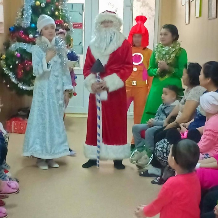 "Мы постарались максимально погрузить детей в мир мультфильмов. Сценарий для этого подобрали. Персонажи были взяты из современных мультиков и фильмов, чтобы дети узнали нас. Словами не передать те эмоции, которые получили малыши при виде всех мультяшек, и на миг мы себя почувствовали героями, как будто сами оказались в том сказочном мире. Вместе с Дедом Морозом и Снегурочкой пришли поведать наш праздник Белоснежка, Фиона, Фиксик и Миньон. Всем очень понравился наш сюжет, в том числе и конкурсы", - рассказывает резидент-онколог Арай Жунусбекова.