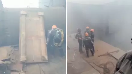 Видео снято, предположительно, на рабочем месте. В первом ролике вокруг видны пыль и дым, среди которых рабочий сидит в противогазе.