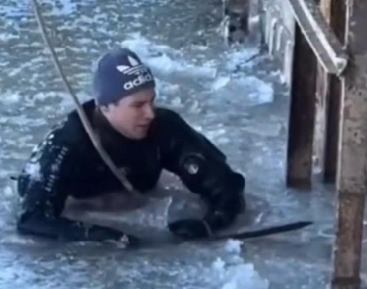 Наблюдавшие со стороны за процессом переживали за самочувствие Владислава, который более двух часов находился в ледяной воде.