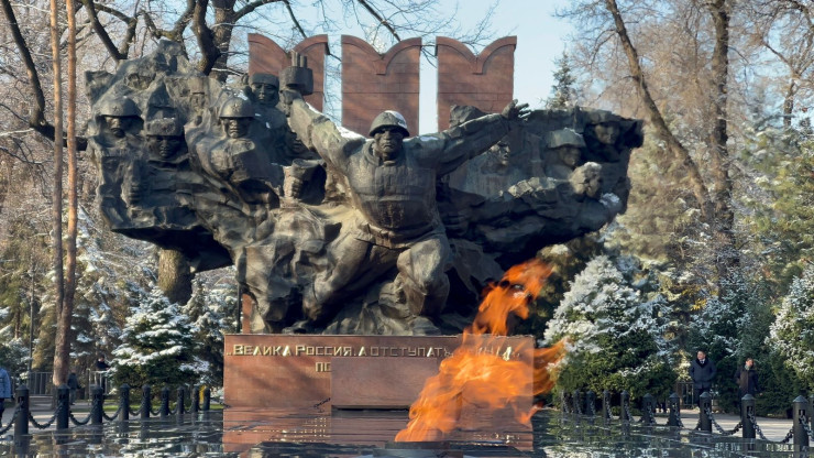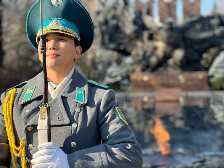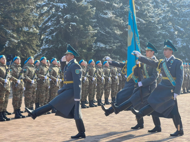 Такой же церемониал военнослужащих Президентского полка "Батыр" прошел в Алматы в парке имени 28 гвардейцев-панфиловцев.