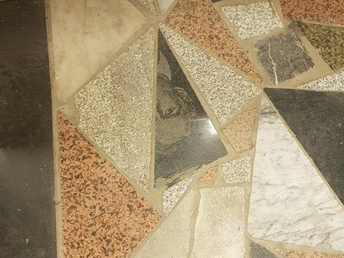 Как сообщается, в социальных сетях распространились фотографии из торгового дома "Алем". На снимках видно, что при создании мозаичного пола из резаной плитки использованы обломки памятников с портретами усопших.