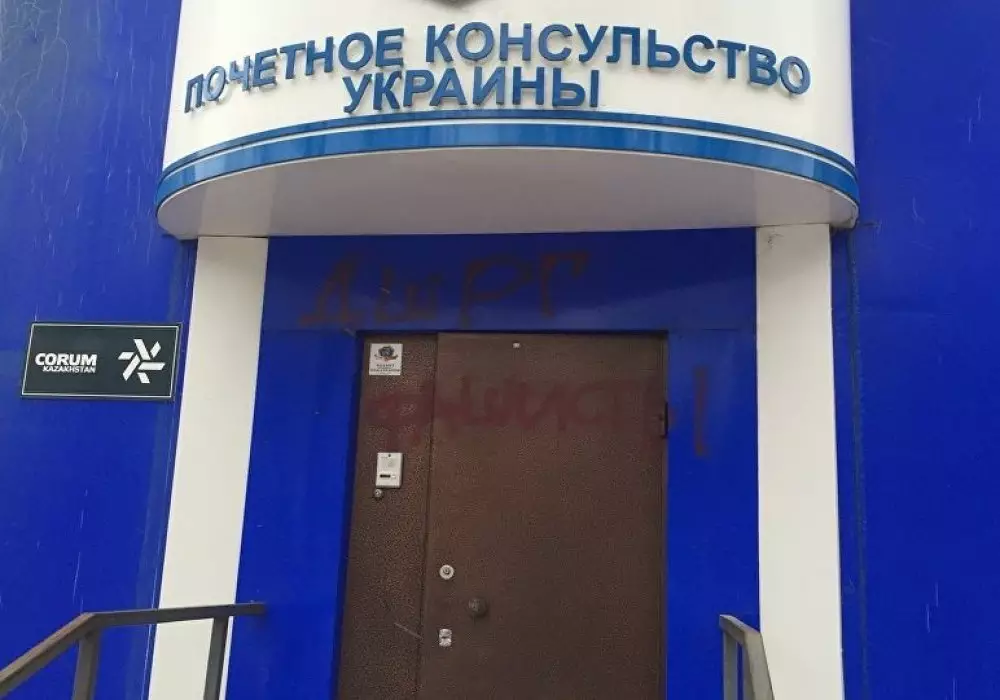 Оскорбительные надписи на здании консульства Украины в Караганде закрасили