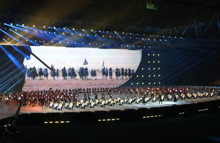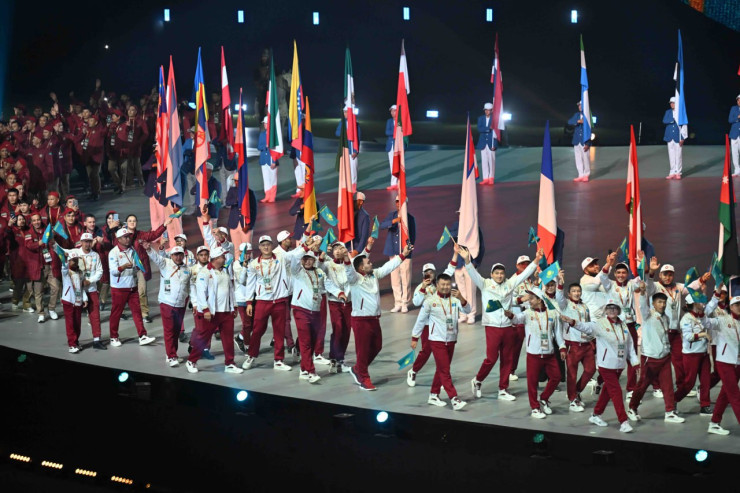 В начале церемонии дети, представляющие различные этнические группы Казахстана, внесли флаг нашей страны, был исполнен государственный гимн. Далее прошел традиционный парад делегаций стран-участниц. В этом году в Играх принимают участие спортсмены из Азии, Европы, Северной и Южной Америки, Африки, а также Австралии.