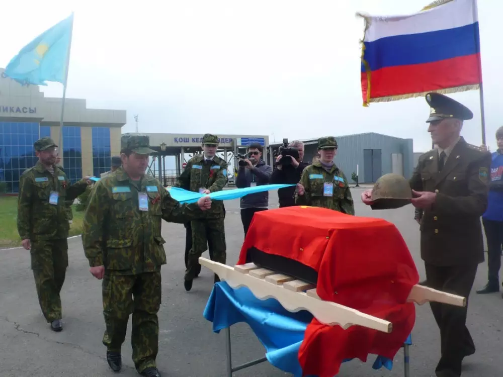 Активисты молодежного российского общества "Молодая Гвардия" доставили на родину останки казахстанского солдата, погибшего в годы Великой Отечественной войны, передает корреспондент Tengrinews.kz. В сопровождении почетного караула, погребальная урна, накрытая красным знаменем, была передана казахстанской стороне на границе Омской и Павлодарской областей на посту "Урлютобе". Уже на территории погранпоста останки накрыли казахстанским флагом, и почтив память героя минутой молчания, передали родным и близким погибшего. "Мы были маленькие, когда наш дядя пропал без вести. Но всегда очень надеялись, что когда-нибудь все равно узнаем хоть что-то о нем. Когда нам сообщили о том, что нашли его, мы конечно обрадовались. Теперь мы сможем похоронить его по нашим обычаям, на родной земле, и это главное", - отметила племянница погибшего воина Сагинай Темиргалиева. Ожидается, что останки Джумабая Бектурсунова, погибшего в районе российского города Старая Русса в 1942 году, перезахоронят в Качирском районе Павлодарской области. Напомним, останки бойца были найдены кировским поисковым отрядом "Фронт" в апреле этого года на месте боевых действий Северо-Западного фронта. Установить личность погибшего помог найденный медальон, в котором кроме воинской части где он служил, были указаны год рождения, национальность и домашний адрес.