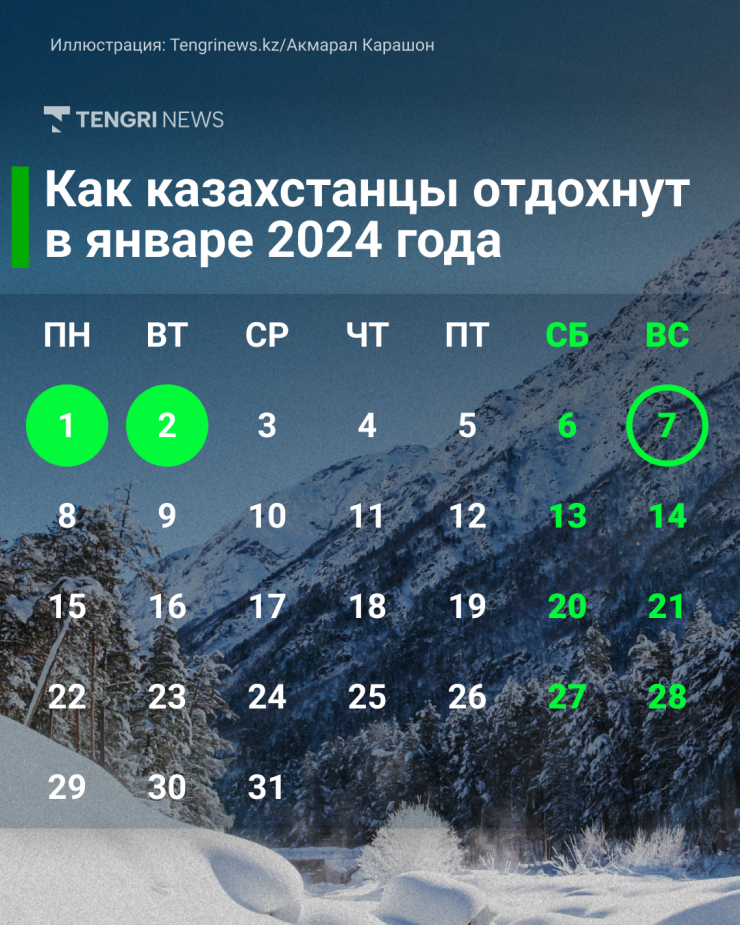 30 и 31 декабря выпадают на субботу и воскресенье, следом казахстанцы отдохнут еще 1 и 2 января.