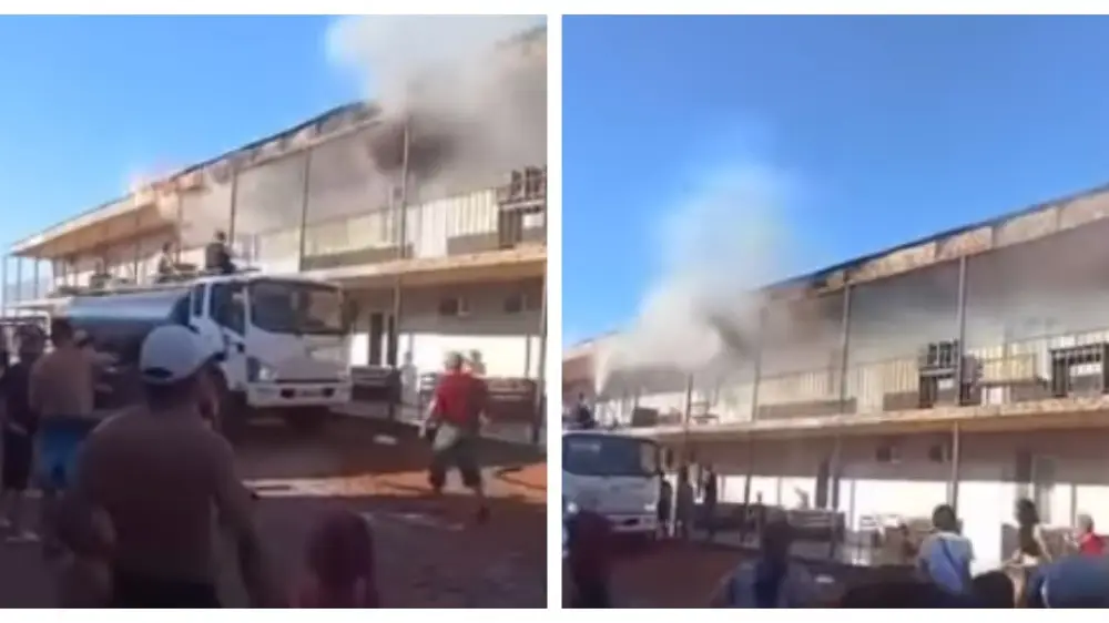 Судя по кадрам, пожар на турбазе пытались потушить несколько мужчин. Они поливали места возгорания на кровле из шланга, при этом рискуя собственным здоровьем.