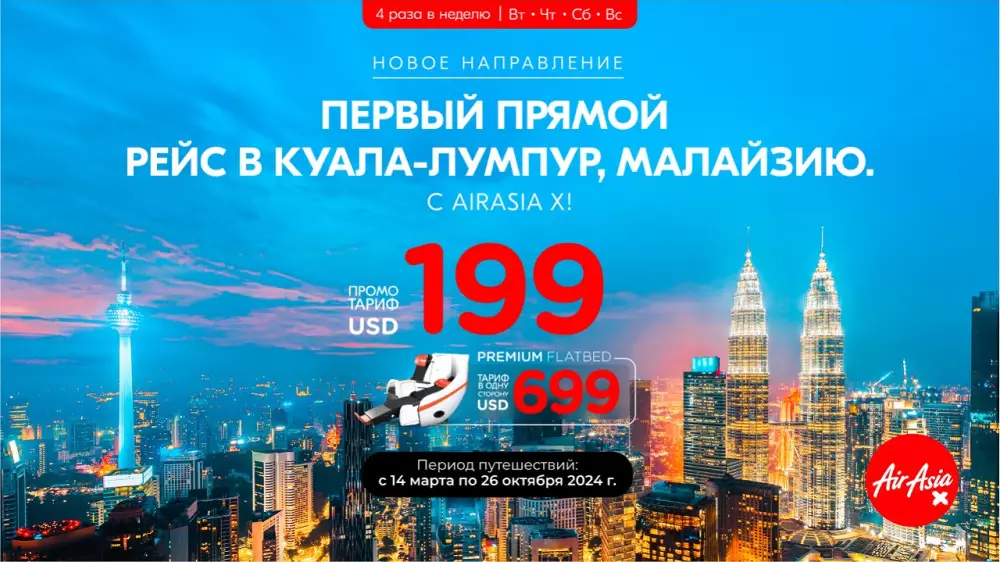 Забронируйте свой билет прямо сейчас и отправьтесь в захватывающее путешествие в Куала-Лумпур с AirAsia X!