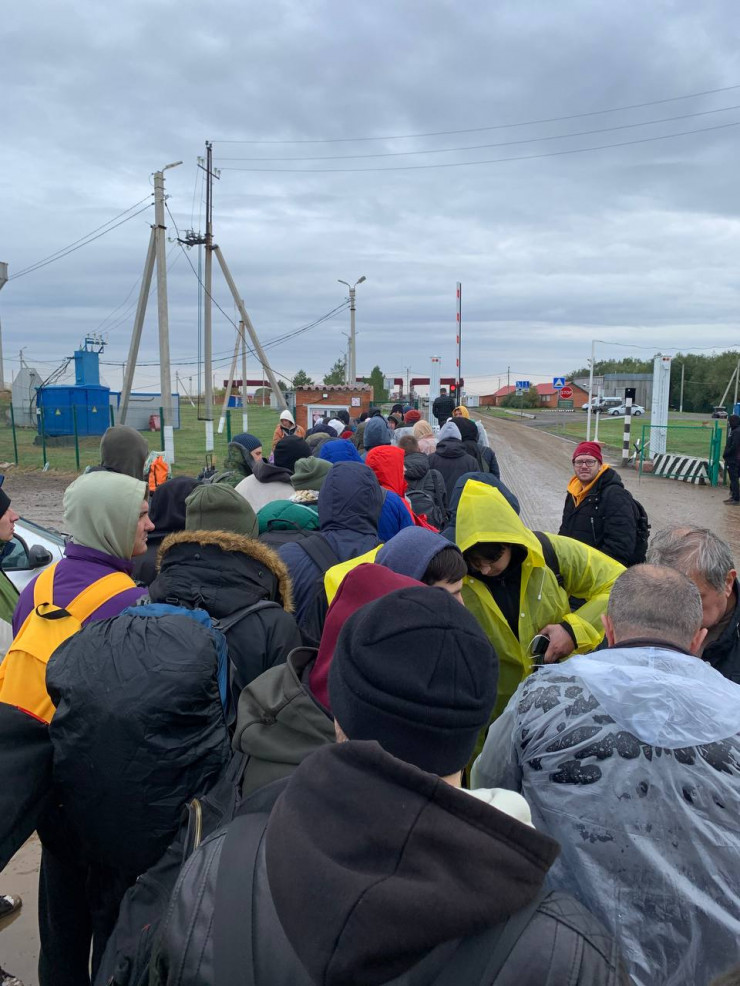 Эти снимки были сделаны, когда Григорий проходил границу между Россией и Казахстаном. Тогда прошедших пункт пропуска россиян ждали волонтеры и предприимчивые водители такси.