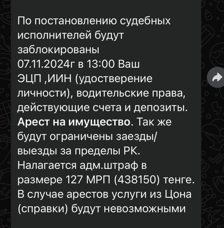 Бекзату же продолжают приходить сообщения от банка и коллекторов.