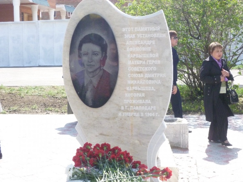 Как отмечалось в обращении, памятный знак обещали установить еще в 90-е годы, однако обещание не было выполнено. По данным историка-исследователя Марии Теренник, Александра Карбышева проживала в Павлодаре с 1892 года в доме по улице Карла Маркса. До середины 90-х годов сохранившийся деревянный сруб Карбышевых числился в реестре зданий-памятников, в нем обещали разместить дом-музей. Однако здание было исключено из реестра и передано в частную собственность.