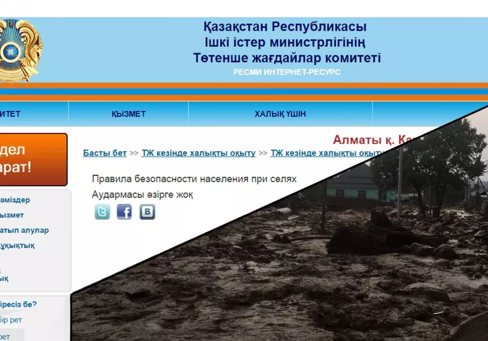 На сайте Комитета по чрезвычайным ситуациям есть памятка "Правила безопасности населения при селях" ("Сел қаупі жайында тұрғындарға ақпарат") на казахском языке. Однако, пройдя по указанной ссылке, на сайте появляется надпись "Пока нет перевода" ("Аудармасы әзірге жоқ"). Следом журналисты попытались найти информацию на сайте ДЧС Алматы. Там есть раздел "Жаднамалар халық үшін", название которого, как отмечает Massaget.kz, было переведено с русского слишком дословно и прямолинейно, с неверным порядком слов.