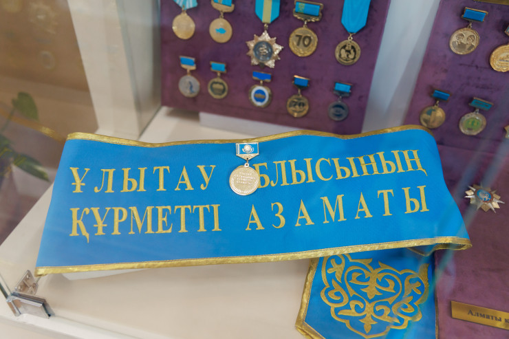 Награды и ордена Торегельды Шарманова в музее занимают целый стенд.