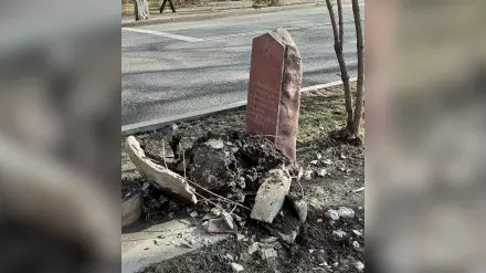 В акимате Медеуского района объяснили, что у памятника случилось дорожно-транспортное происшествие. Виновник аварии скрылся с места происшествия.