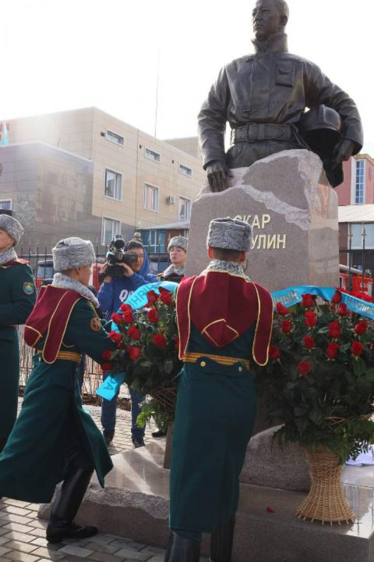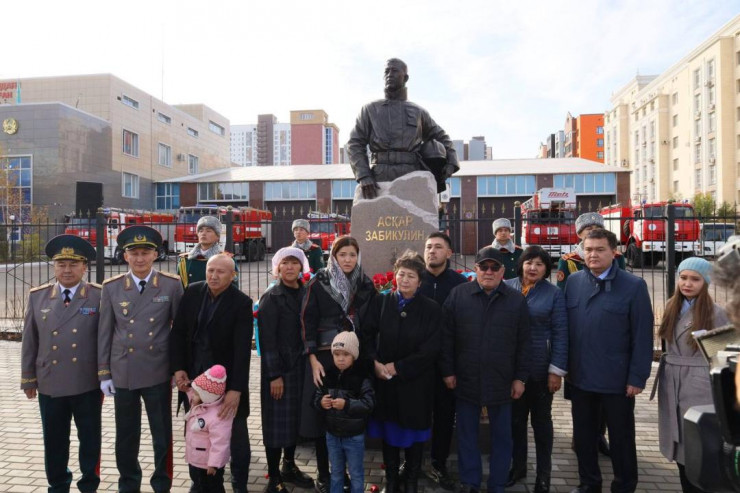 Памятник в честь героически погибшего столичного пожарного Аскара Забикулина установили на территории специализированной пожарной части № 6 в Астане, которая также носит имя пожарного, передает корреспондент Tengrinews.kz.