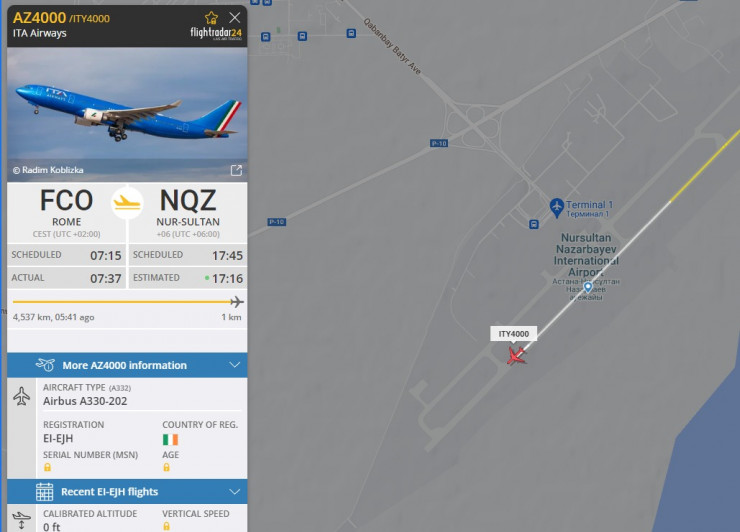 Борт AZ4000 авиакомпании ITA Airways приземлился в аэропорту столицы в 17:18.