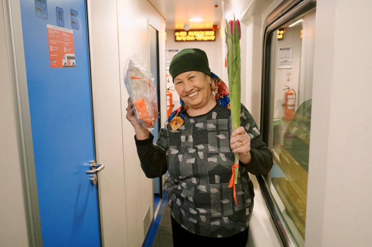 Женщины выразили благодарность проводникам. Сами поезда также были украшены в тематике 8 Марта. В этот день подобную акцию провели также и в других областях.