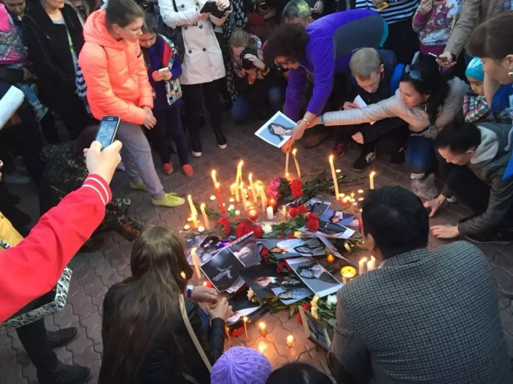Песни любимого музыканта звучали с разных концов набережной. Больше двух часов без аккомпанемента люди друг за другом подхватывали слова знакомых и любимых песен, и в едином душевном порыве, с трудом справляясь с дрожью в голосе, пели. А когда стихли последние аккорды, небо над Иртышом озарилось яркими огоньками запущенных фонарей.