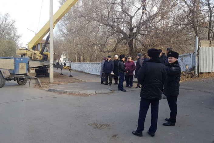 Чтобы привлечь внимание к возникшей ситуации, жители вызвали полицию. Также на место инцидента прибыли представители акимата города, прокуратуры и даже антикоррупционной службы. На вопросы чиновников и журналистов представители стройфирмы заявили, что хотели лишь восстановить забор спорного участка.