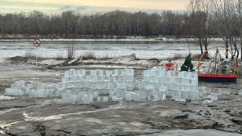 Жаңа жылға жетпестен мұз қалашық суға айналды. Мұздан жасалған түрлі ертегі кейіпкерлері де су болып ағып жатыр.