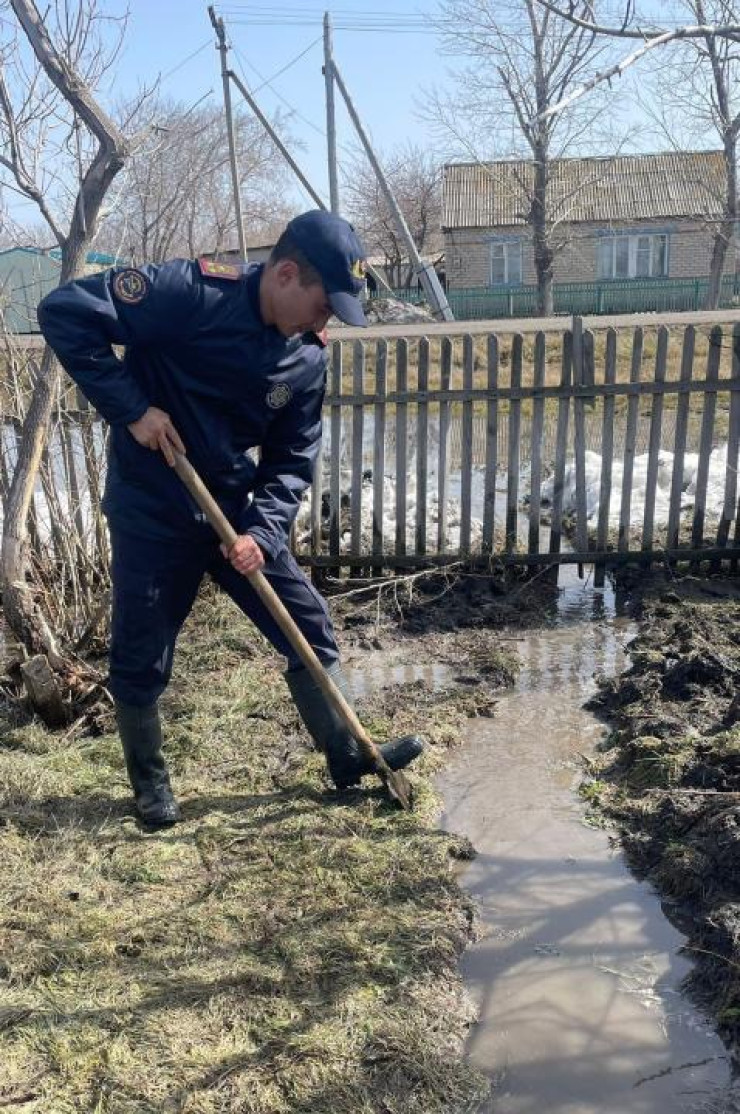 В населенных пунктах Акмолинской, Карагандинской, Актюбинской, Атырауской, Западно-Казахстанской, Костанайской, Павлодарской, Северо-Казахстанской областях продолжается ликвидация последствий паводков, а также проведение противопаводковых мероприятий и аварийно-спасательных работ, откачка талых вод, укладка мешкотар инертными материалами, берегоукрепительные работы каналов, арычных систем, оповещение и эвакуация людей в безопасные места.