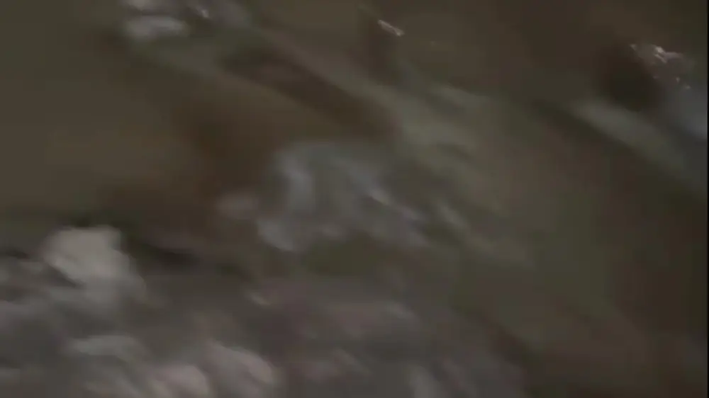 Видео снято в темное время суток. На кадрах запечатлен поток воды, который затопил дворы.