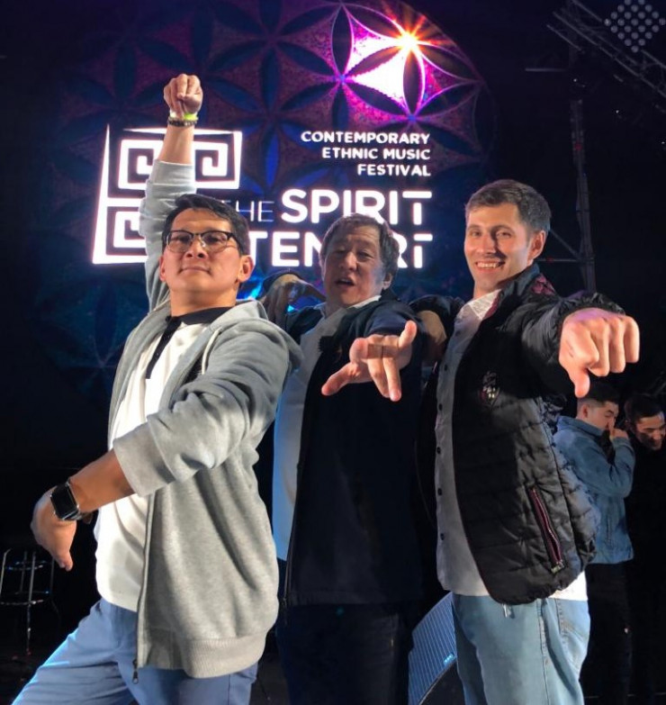 Слева направо: Батыр Казыбаев, Жан Кастеев и участник грузинской группы The-Shin