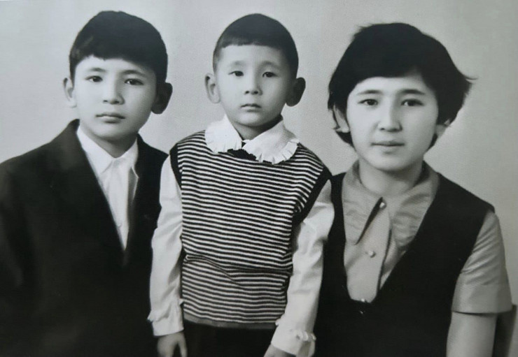Слева направо: Нуртас, Батыр и Наргуль Казыбаевы