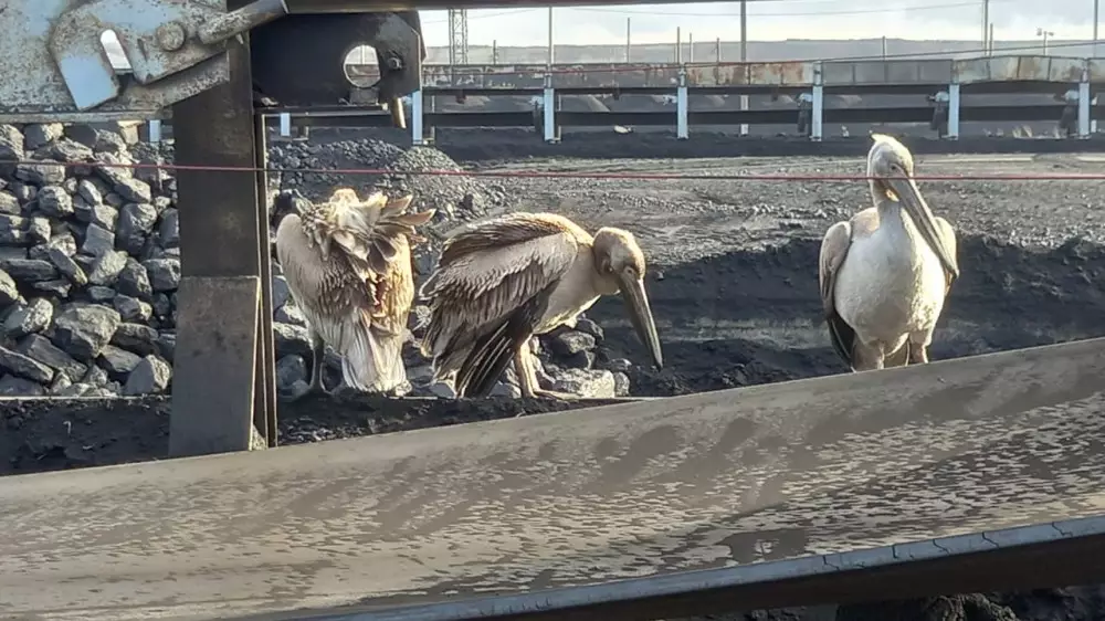 Вечером 9 ноября на разрезе "Восточный" между угольными складами обнаружили четверых пеликанов. Вероятно, они пришли к горнякам за помощью, передает корреспондент Tengrinews.kz.