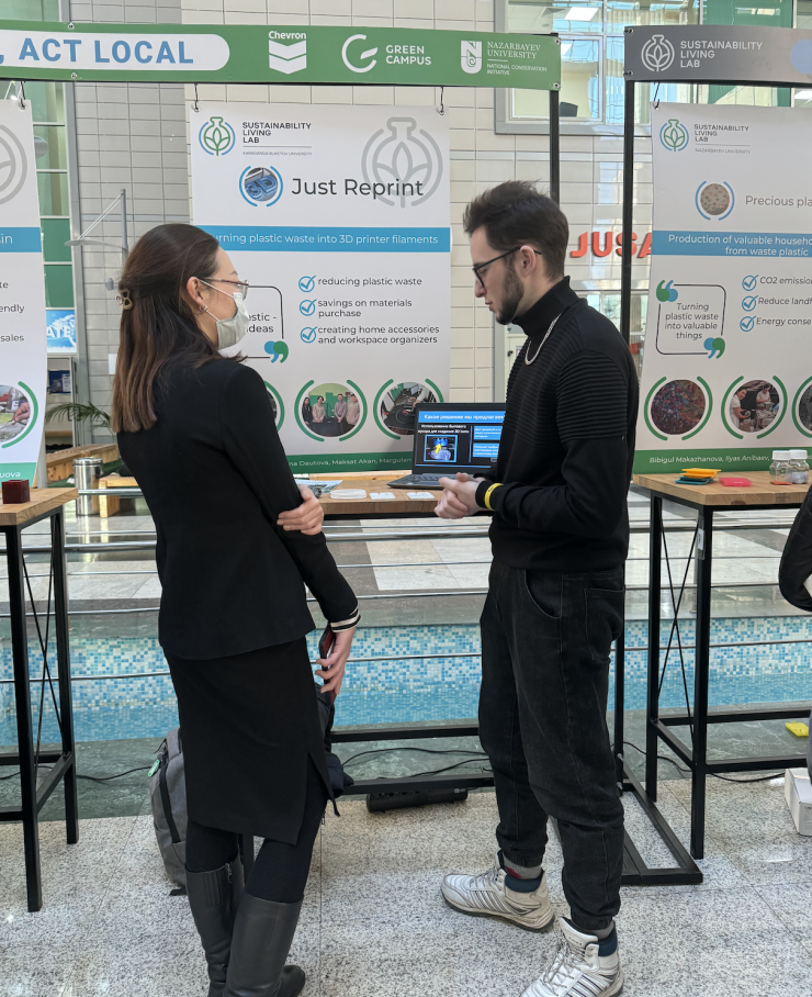 Студенты Назарбаев Университета, КарГУ им. Букетова и других отечественных вузов презентовали для журналистов свои экопроекты по переработке пластика, стекла, гидропонным установкам, контролю расхода электроэнергии и другие экоразработки. Все они были созданы в рамках программы SLL - программы, позволяющей студентам всего Казахстана реализовывать экологические проекты в кампусах университетов.