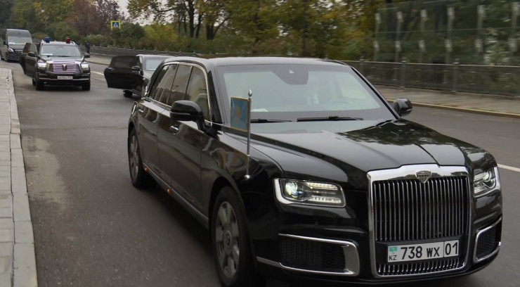 Касым-Жомарт Токаев приехал в Кремлевский дворец на автомобиле с казахстанскими номерами.