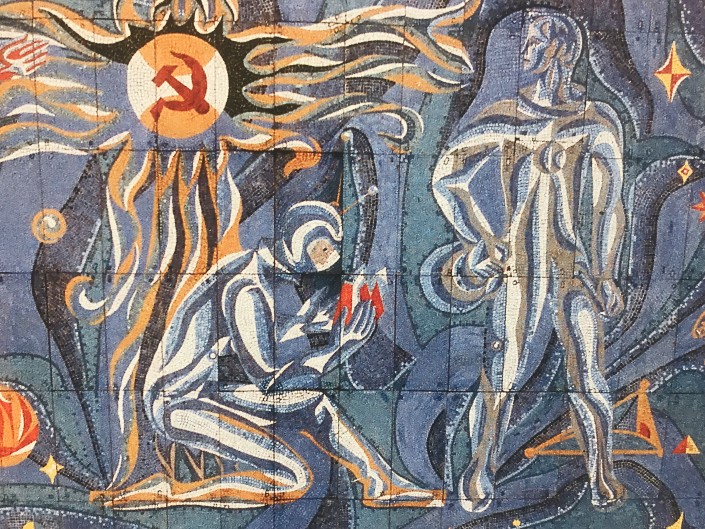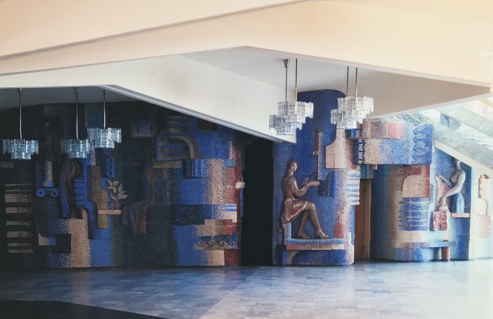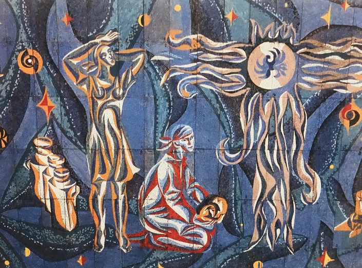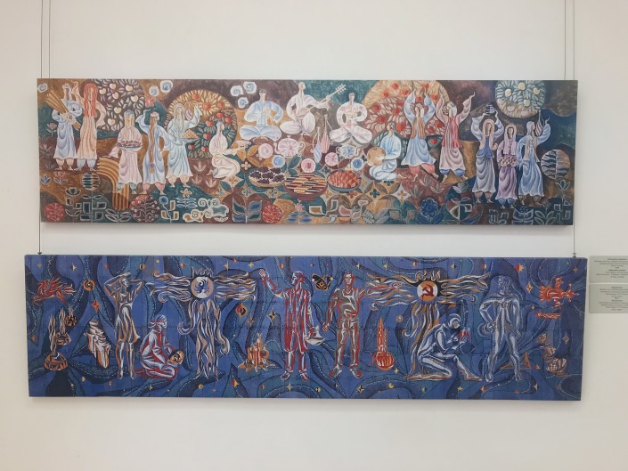 Витраж "Культура Казахстана. Связь прошлого и настоящего". Холл третьего этажа Дома ученых в Алматы