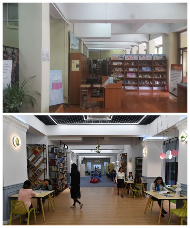 Ранее в Алматы в рамках программы "Рухани жаңғыру" была отреставрирована и модернизирована в молодежный интеллектуальный центр юношеская библиотека имени Жамбыла. После нескольких месяцев капитального ремонта в библиотеке появился современный open space с зонами для работы с книжными изданиями, электронной информацией, просмотра документальных, научно-познавательных фильмов, проведения презентаций, интеллектуальных клубов, бесплатным Wi-Fi и кофейней.