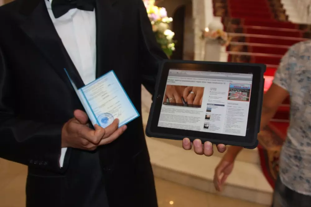 В Алматы поженится первая казахстанская пара, подавшая заявление на регистрацию брака через Интернет, передает корреспондент Tengrinews.kz. Жених и невеста - продюсер агентства "Хабар" и телеканала "ЕлАрна" Асхат Садырбай и участница группы "Инкар" Ерке Есмахан. Молодые рассказали Tengrinews.kz свою историю любви. По словам невесты Ерке, с Асхатом она познакомилась во время выступления группы "Инкар" (проект Баян Есентаевой, - Прим. автора). "Мы встречались всего месяц, - рассказывает невеста. - Однажды вечером он приехал и сделал предложение. Для нас, как первой паре, подавшей заявление на портале электронного правительства (www.egov.kz), регистрация брака будет бесплатной. Большое спасибо". Отметим, что стоимость регистрации брака в Центральном дворце "Жас Отау" стоит 120 тысяч тенге. По словам Асхата, процедура подачи заявления заняла всего пару часов. Он оплатил госпошлину в размере 1 МРП по банковской карточке. "У меня как у занятого человека, нет времени ходить по ЦОНам, выстаивать очереди, собирать документы (...). Я увидел рекламу eGov и решил подать заявление через Интернет. Сама свадьба состоится 28 сентября", - рассказал Садырбай. Церемония бракосочетания состоялась сегодня, 12 сентября, в 12.00 по местному времени. Центральный дворец бракосочетания "Жас Отау" сделал подарок молодоженам и зарегистрировал пару совершенно бесплатно. Поздравить молодоженов приехали звезды казахстанской эстрады: Макпал Исабекова, группа Shine, участницы группы "Инкар", телеведущий и композитор Нурлан Еспанов и другие. Актер Ануар Нурпеисов не смог приехать на церемонию. Напомним, министр связи и информации Казахстана Аскар Жумагалиев сообщал, что первые 50 пар, которые подадут заявление на регистрацию брака на портале электронного правительства (www.egov.kz), получат уникальный подарок от звезд казахстанской эстрады. Отметим, eGov начал принимать заявления на регистрацию брака в августе этого года. По данным пресс-службы минсвязи, для остальных 49 подавших заявление через Интернет пар подарком станет видеопоздравление казахстанских звезд.